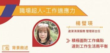 璧瑛主任勇於挑戰跨領域的工作,善用資源創造工作與生活平衡的雙贏局面,值得所有同仁學習。